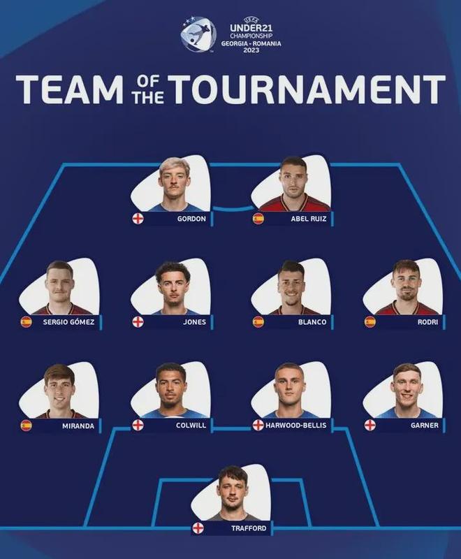 2023年夏天,他迎來了職業(yè)生涯至今的最高光時刻——隨英格蘭U21國家隊征戰(zhàn)歐青賽。他是球隊奪冠的重要功臣,更憑借在整個賽事中的穩(wěn)定發(fā)揮,以右后衛(wèi)的身份入選了賽事官方最佳陣容。這座沉甸甸的獎杯,是對他堅持與才華的最佳獎賞。