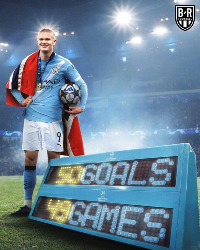 今天的比賽后,哈蘭德達成歐冠50球成就!他是史上最快達成這一數(shù)據(jù)的球員!