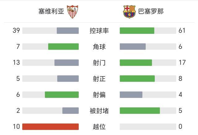 從全場數(shù)據來看,塞維利亞雖僅有39%的控球率,13次射門和5次射正,卻是更具進攻威脅的一方。反觀巴薩空有61%的控球率,17次射門有8次射正,卻只轉化為1粒進球!